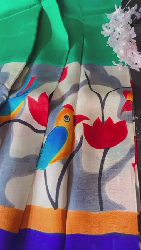 Hand paint on pure silk saree