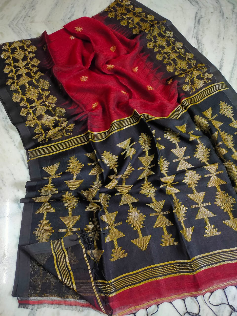 *👉 EXCLUSIVE IKKOT LINEN JAMDANI SAREE*