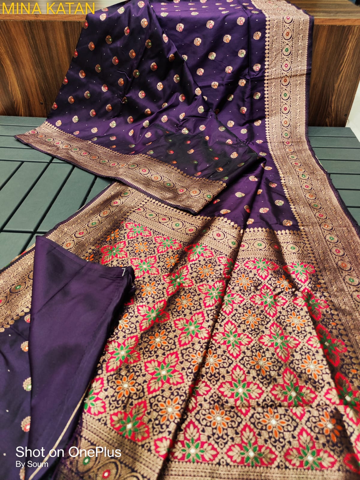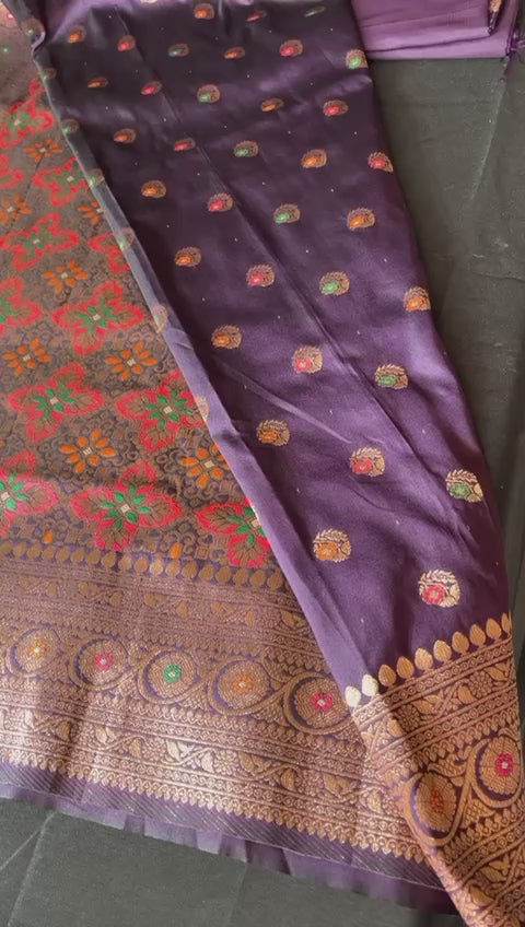 Semi muga katan saree with minakari work