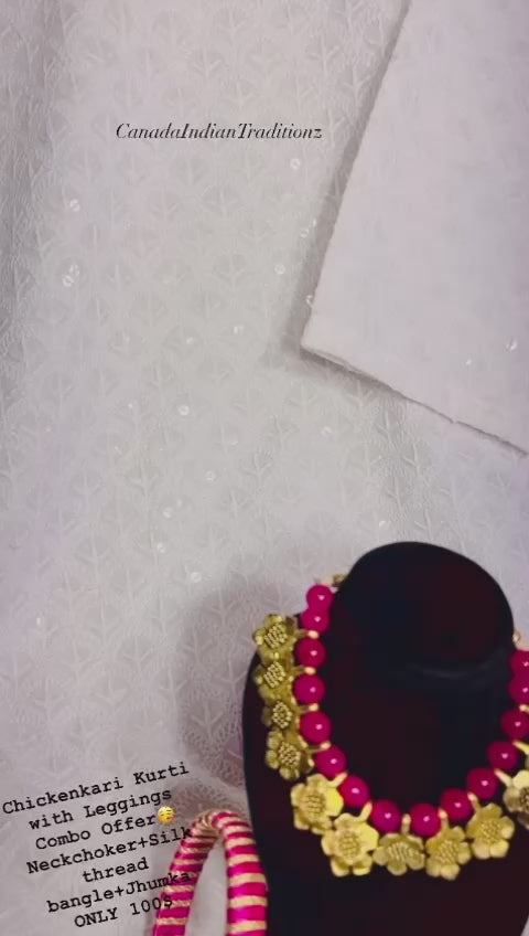 WHITE CHIKENKARI KURTI WITH LEGGINGS COMBO OFFER